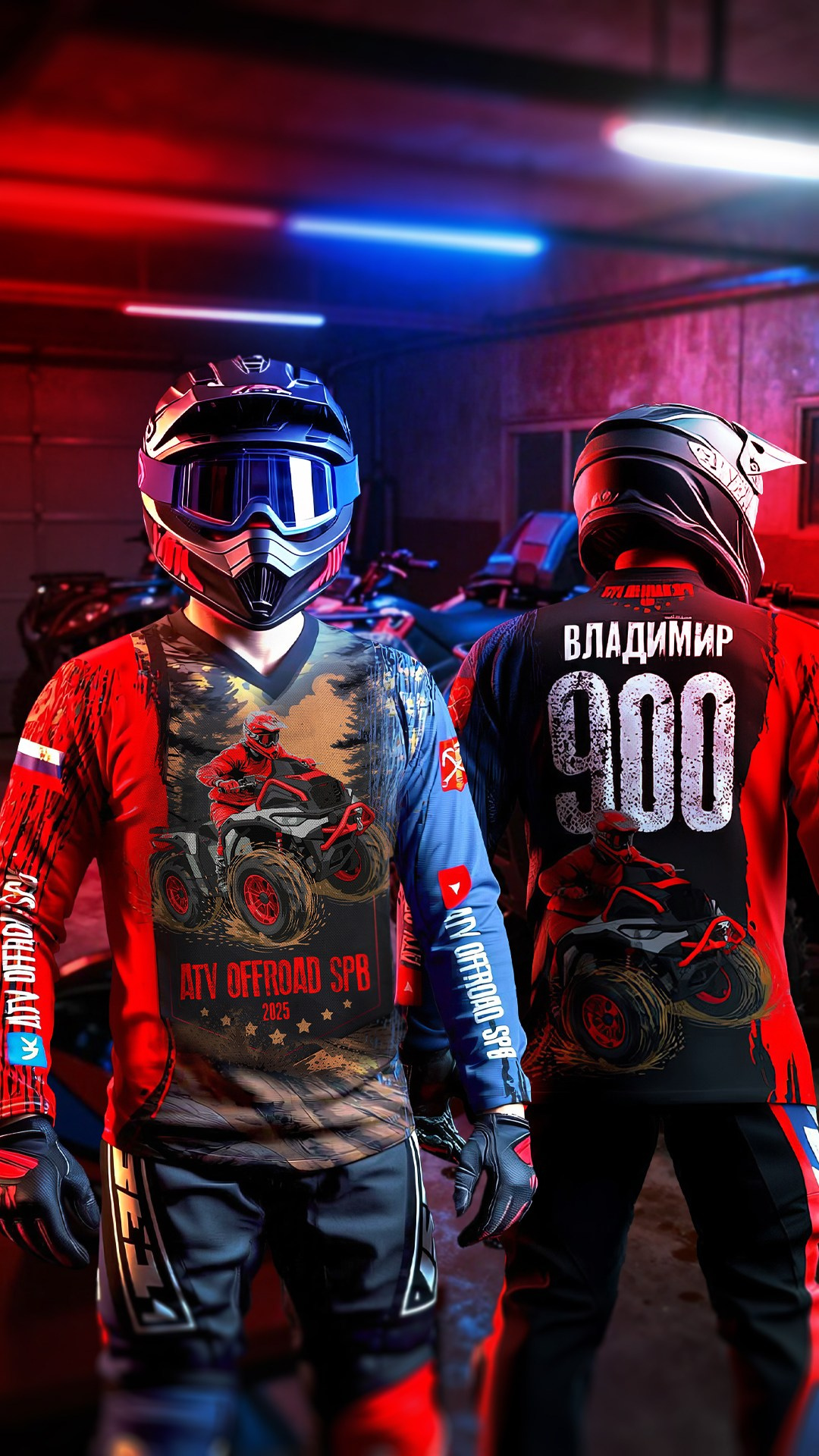 Разработка логотипа команды квадроциклистов «ATV Offroad SPb» и дизайна формы (мотоджерси — специальная футболка с длинным рукавом, используемая в мотоспорте, обладающая повышенной прочностью и влагоотведением).