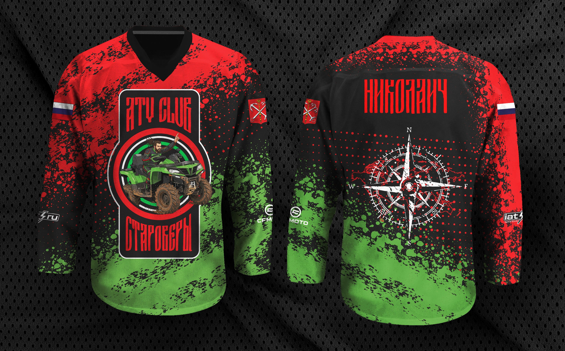 Разработка логотипа команды квадроциклистов «Староверы» и дизайна формы (мотоджерси — специальная футболка с длинным рукавом, используемая в мотоспорте, обладающая повышенной прочностью и влагоотведением).