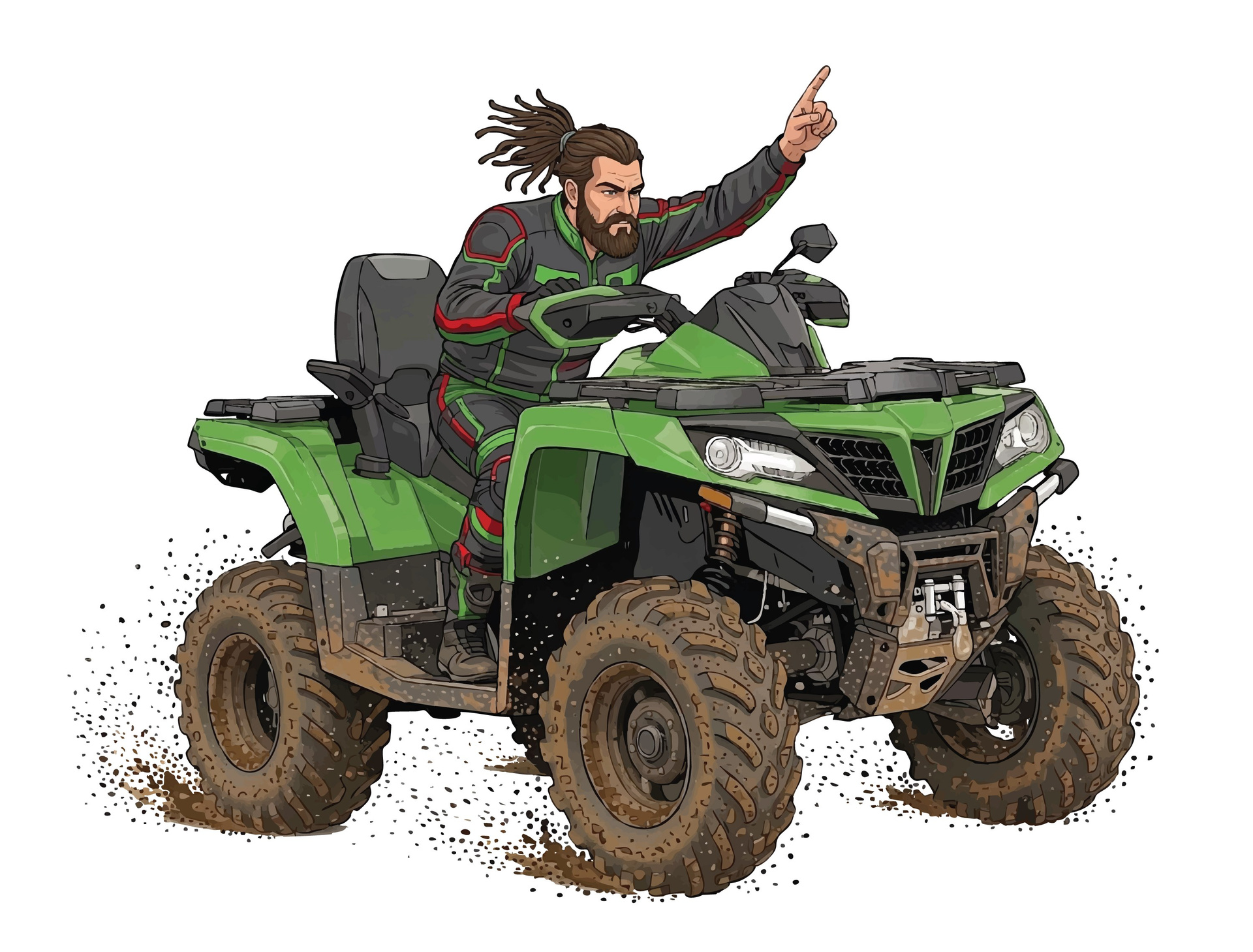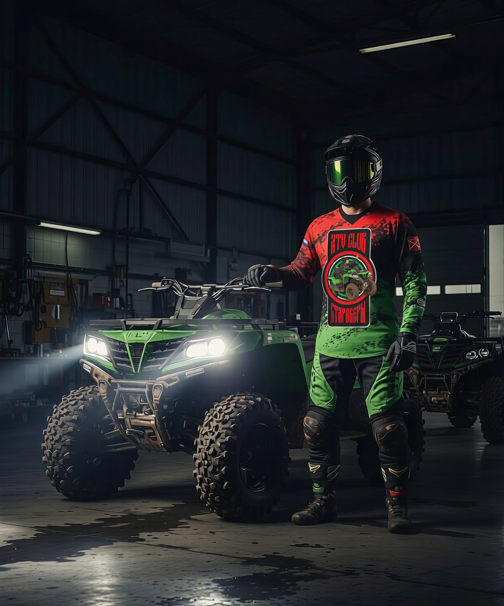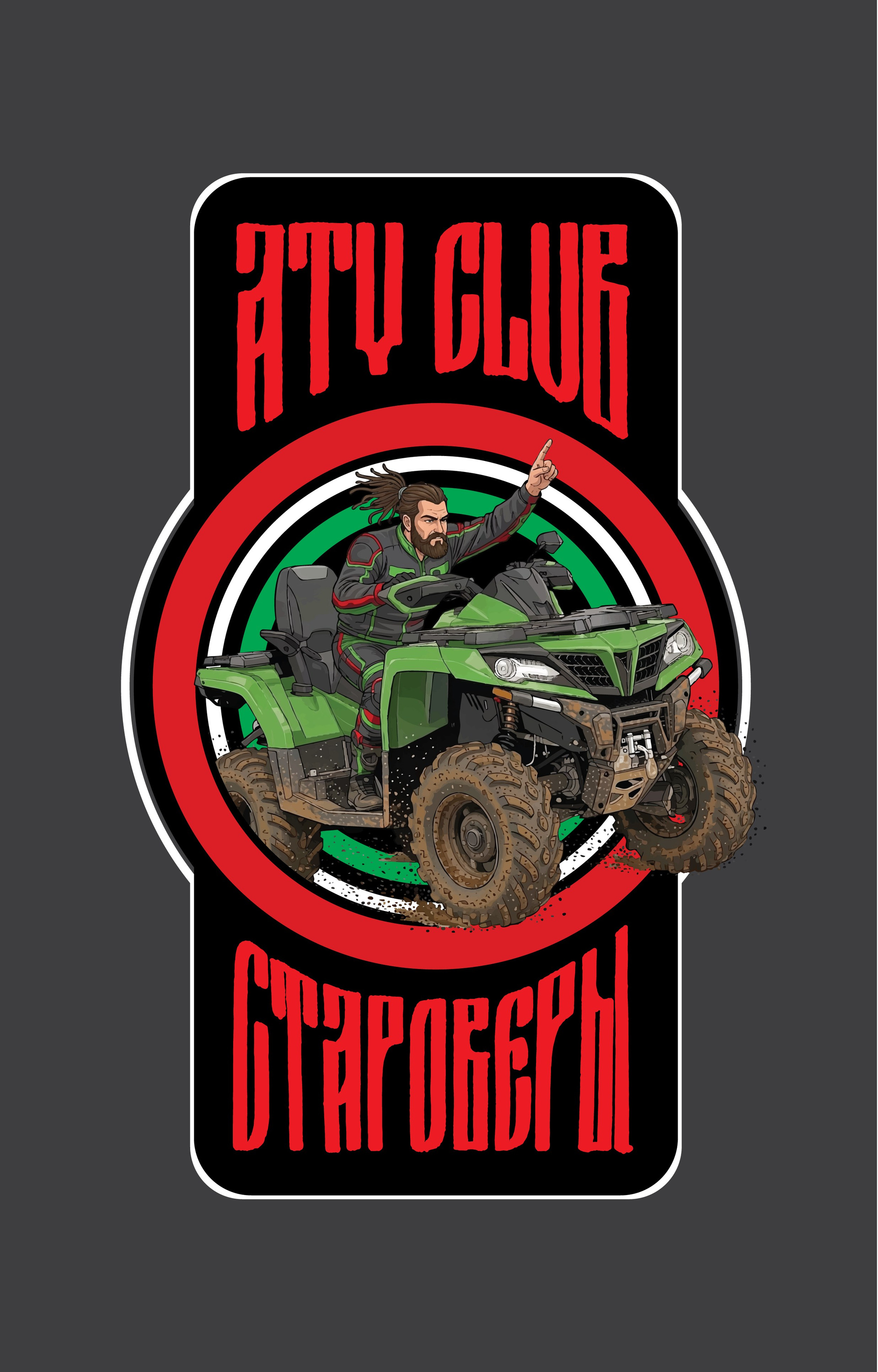 Заказчик прислал свой старый дизайн, попросив его взять за основу и доработать, использовать в дизайне конкретную модель квадроцикла, перекрасить в зеленый цвет. В дизайне формы использовать красные и зеленые акценты, шрифт в старославянском стиле.